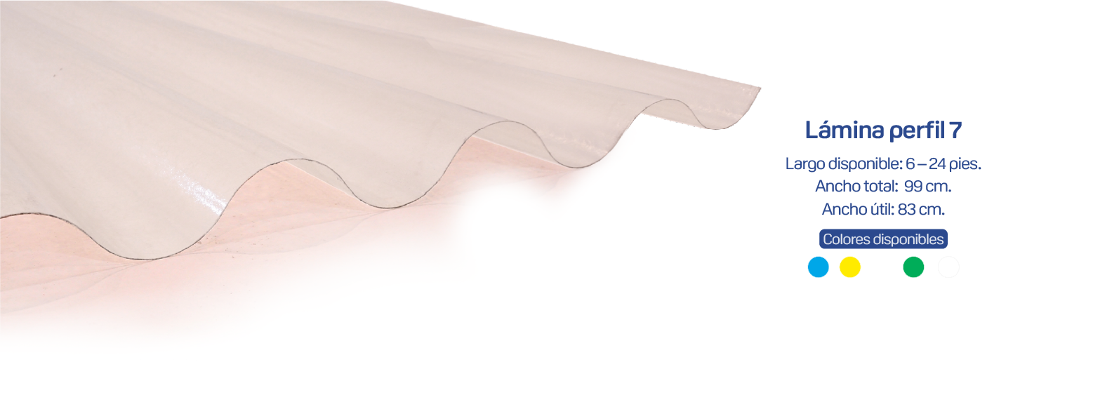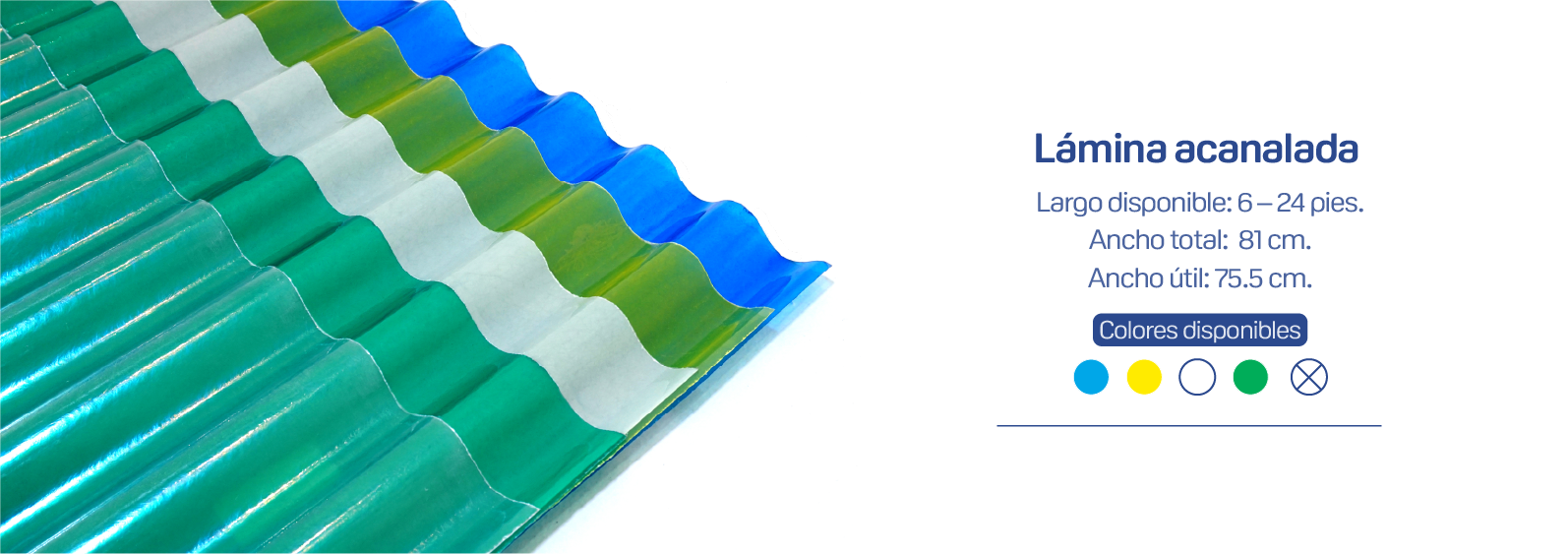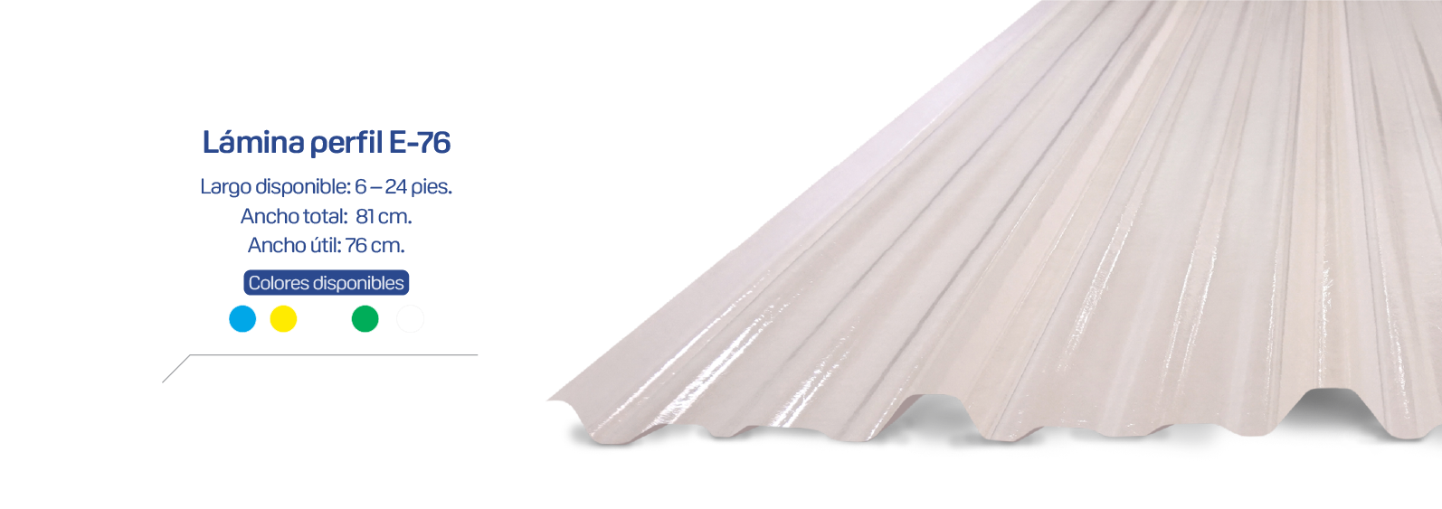 • Segura por ser un aislante eléctrico. • Liviana, flexible, durable, de alta resistencia mecánica y resistente al impacto. • Translucida, facilita la entrada de luz: 40% de transmisión (economiza energía eléctrica). • Protección contra rayos UV en las dos fases. Bloquea hasta 90% los UV dañinos para la salud humana. • Resistencia a oxidación, ambientes alcalinos y salinos. • Fácil de trabajar, utilizando herramientas convencionales. • Mejor relación costo-beneficio que otros materiales. • Fácil instalación y menor costo en mano de obra.